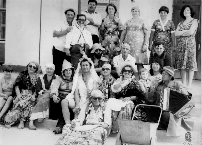Esta serie empezó a partir de esta foto. Una foto de una boda de mi archivo familiar. En las zonas rurales de Ucrania se puede vivenciar los vestigios de lo arcaico cuando se celebran los solsticios de verano, de invierno, los equinoccios de otoño y primavera y, por supuesto, las bodas.